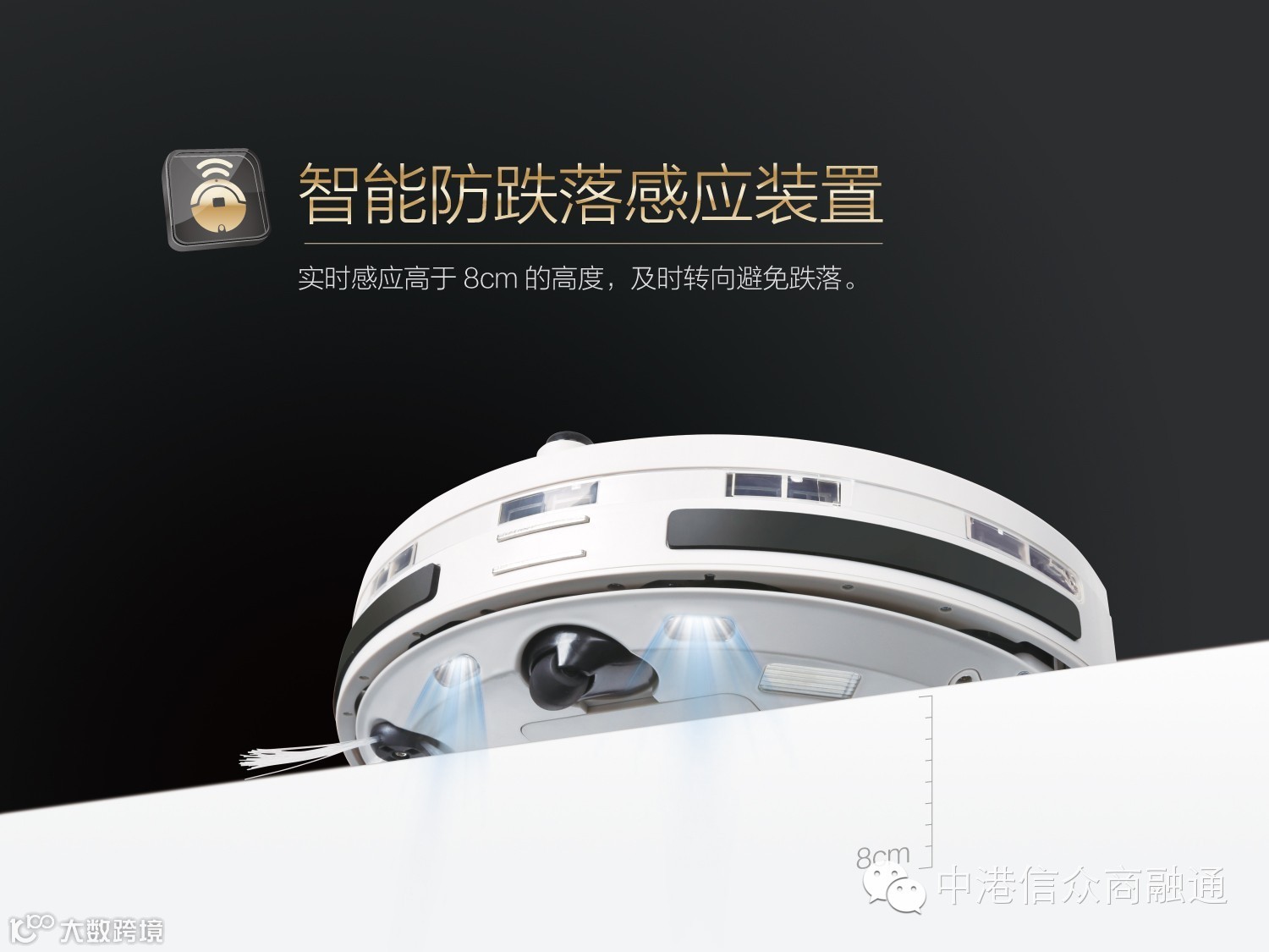 可以防止吸尘器从桌子或楼梯上跌落下来。智能墙检(光学式防碰撞)