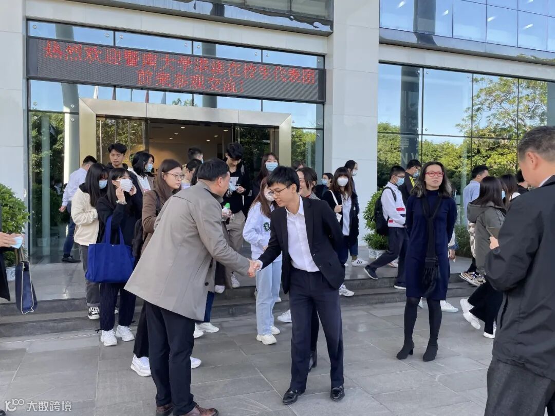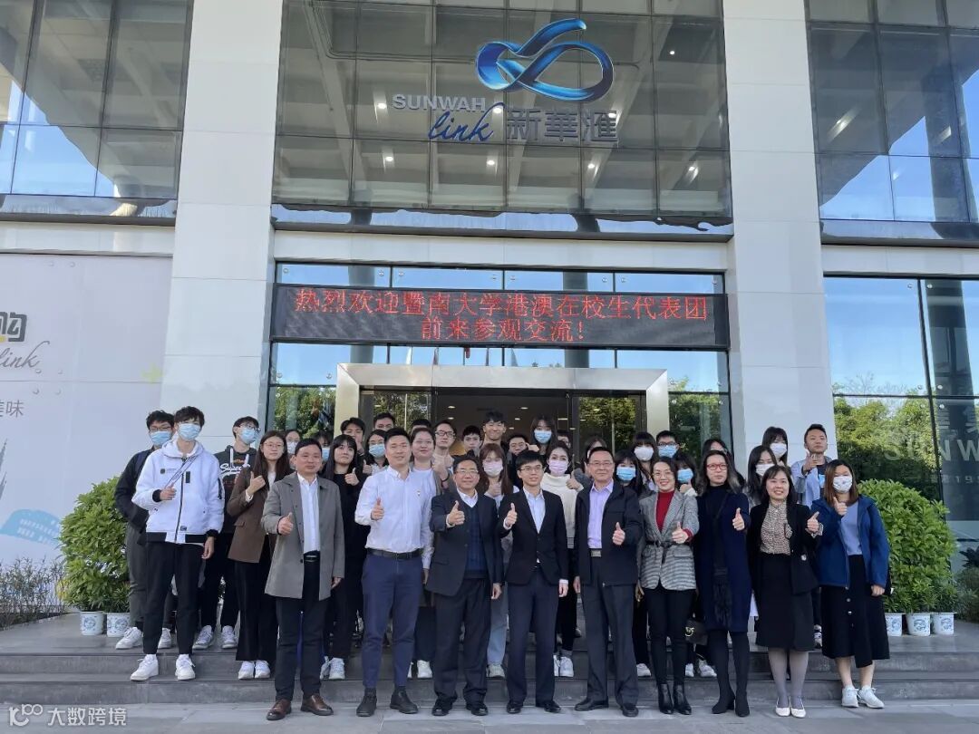 2021 年 12 月 2 日下午,暨南大学创业学院院长何清文率领暨南 大学 33 名在校港澳学生代表团前来广州新华汇参观交流,对方出席 领导还有暨南大学党委常委、统战部部长庄汉文,广州市黄埔区、开发区发展改革局大湾区办秘书处处长欧阳龙正, 暨南大学创业学院 EDP 中心主任余燕舞。