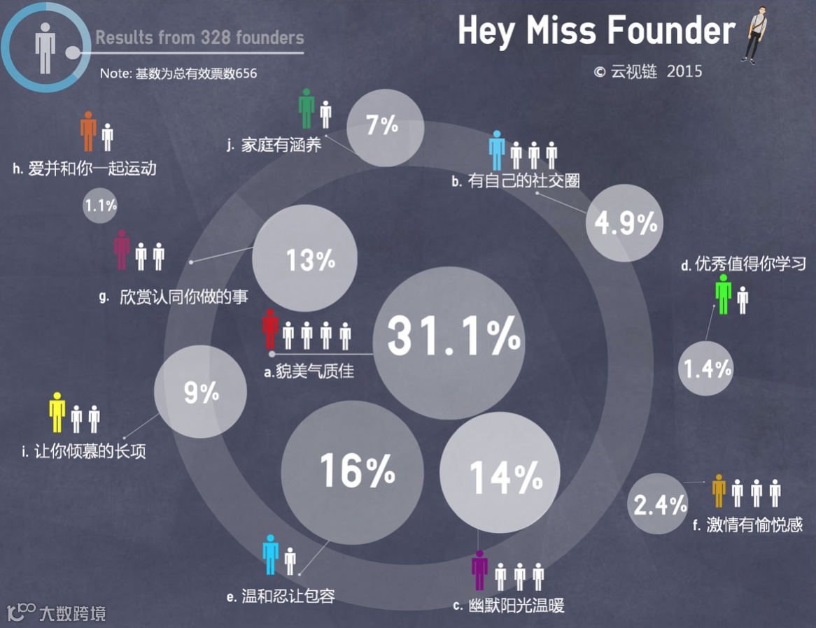 导读:作者抽取了朋友圈里有代表性的130位男性创始人兼CEO朋友进行了一次关于创始人是怎么选择女友的调查。结果表明,貌美气质佳是几乎所有阶段创始人共同的选择...