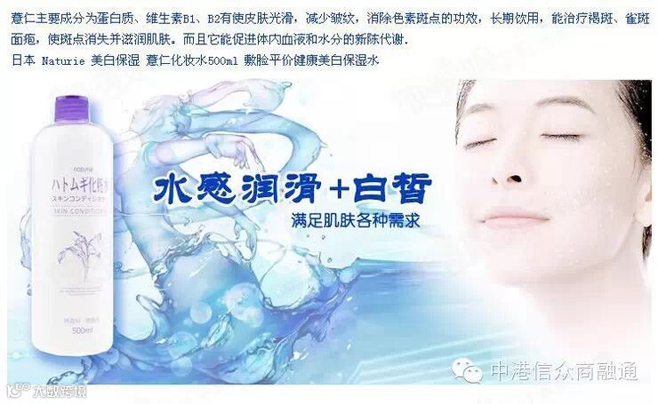 价廉物美:配合天然植物成分薏苡仁精粹的这款护肤水以其500ml的容量、传递给消费者前所未有的高性价比。