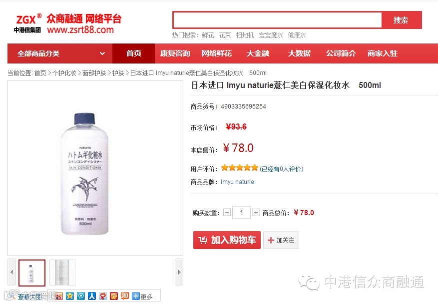 无香料无色素:无香料无色度,对皮肤不刺激。商品名称:日本进口 Imyu naturie薏仁美白保湿化妆水 500ml