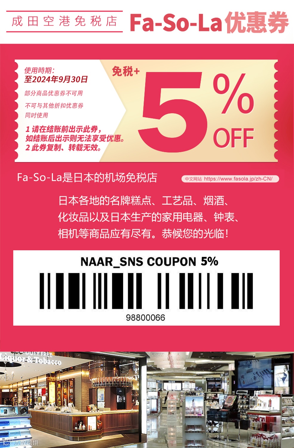 成田机场Fa-So-La免税店优惠券