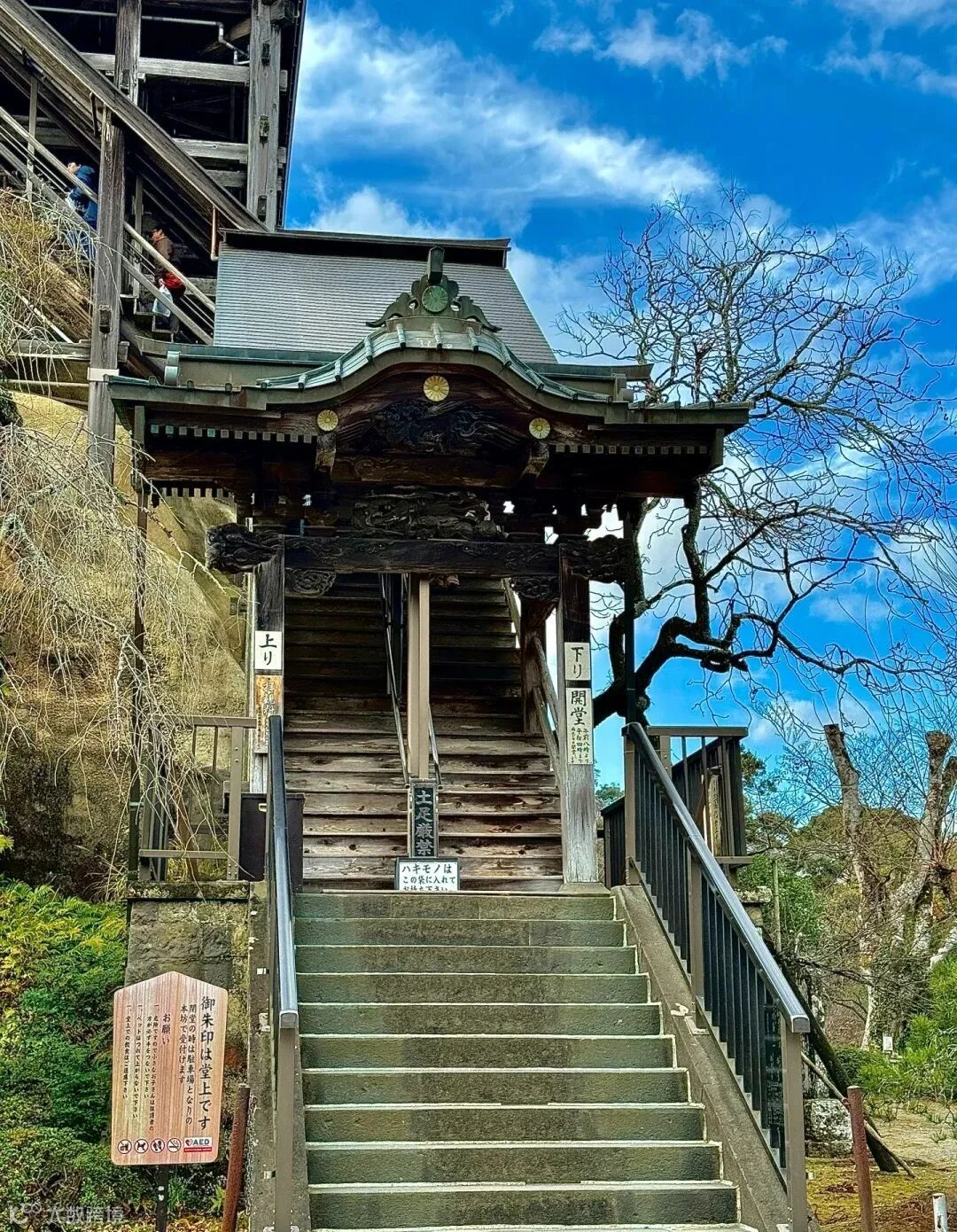 千叶的一个很特别古朴的寺庙,全日本最接近宫崎骏世界的寺庙。也是日本第一个“四向悬架”法建造的寺庙正殿,有着接近千年的历史,它是日本重要的文化财产,也是日本很灵验的一个求子庙,寺院后方还有散步道和展望台,可以顺着散步道下山。