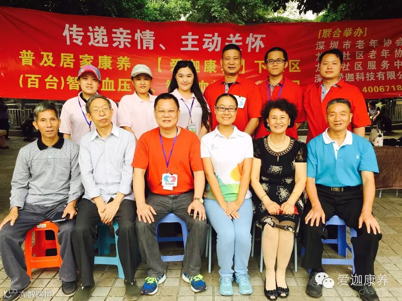 2015年11月6日,爱迦康养以“传递亲情,主动关怀”为主题,在深圳市龙岭社区举办智慧社区健康普及活动,为社区的居民送去关怀与问候。