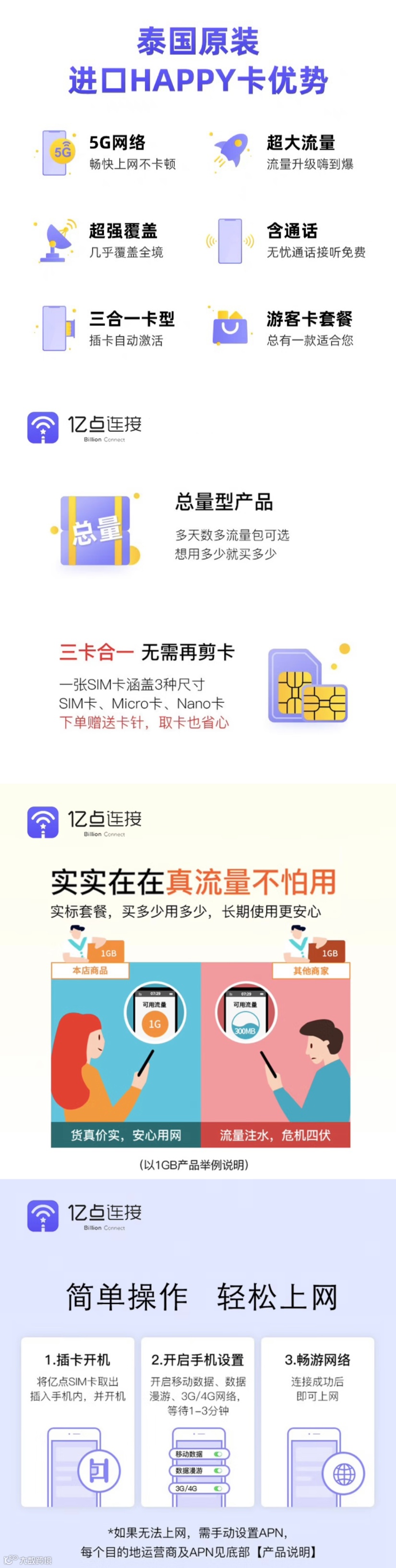 什么是联名卡?联名卡就是亿点连接和泰国DTAC运营商官方合作出的上网卡,是官方认证的原生资源。