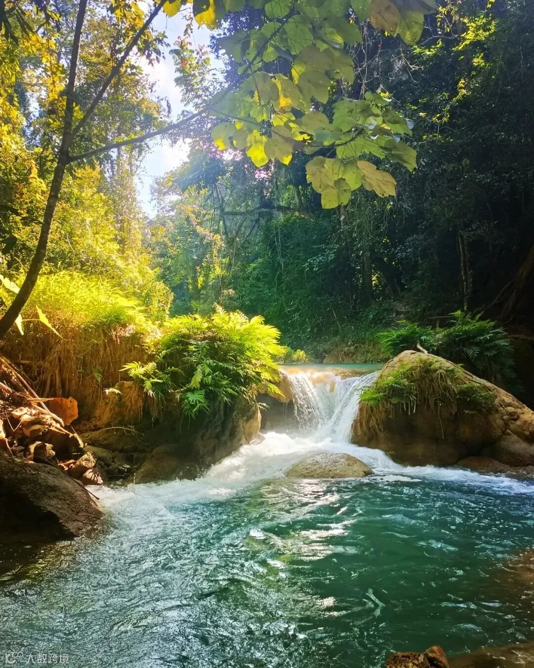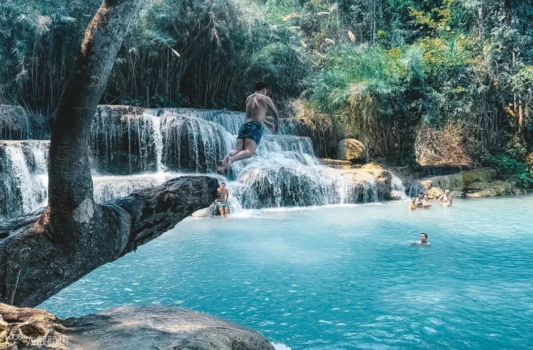 达塞瀑布倾斜而入的水潭数量更多,瀑布落差高度较小,离琅勃拉邦也更近