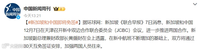 新加坡也加入了免签‘群聊’