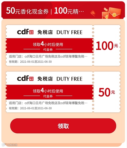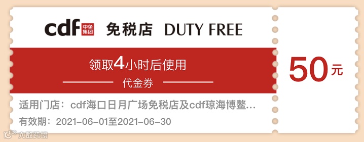 1) 凭此券购买香水化妆品、进口酒类免税品立减50元;