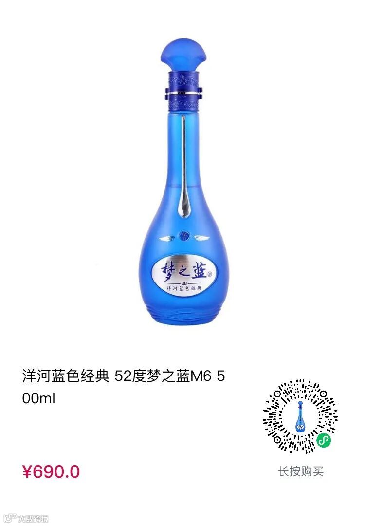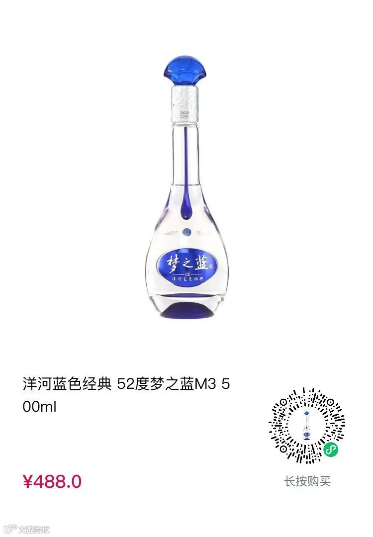 洋河蓝色经典52度梦之蓝M6 500ml到手价552