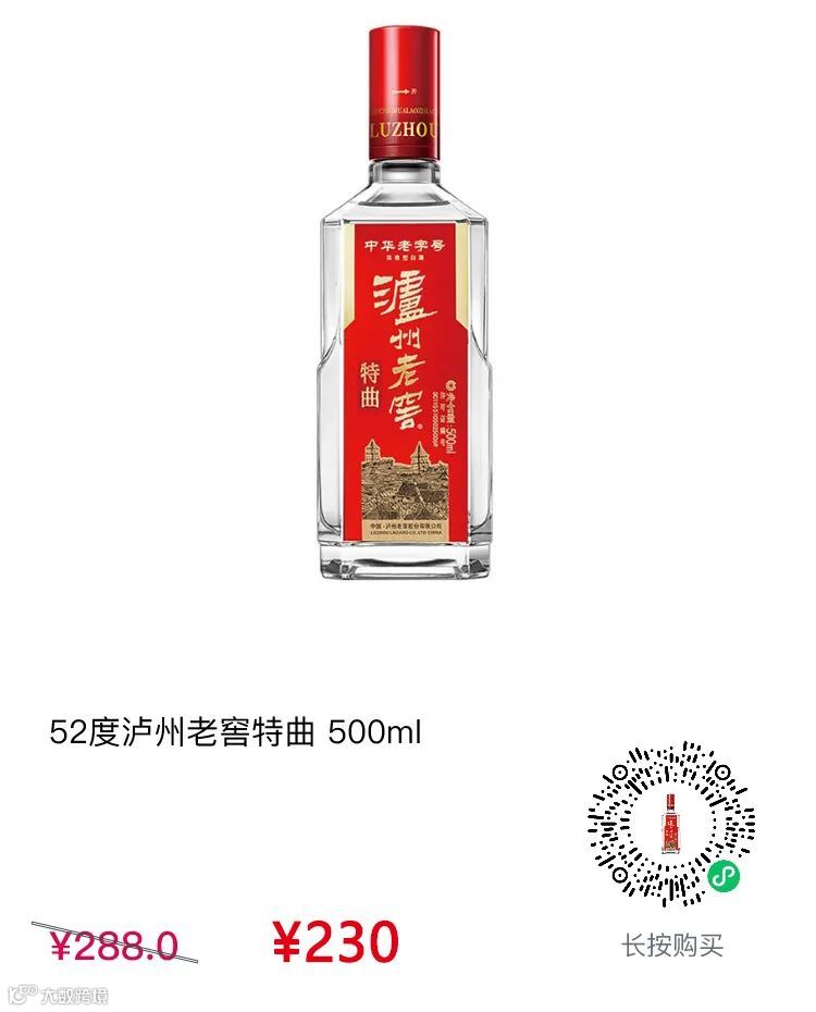 52度泸州老窖特曲500ml惊爆价230