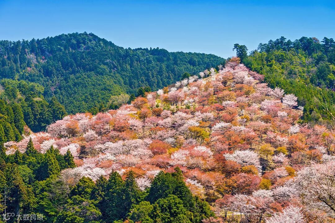 这里自古有着「日本赏樱第一名所」的美誉,全山约三万株樱树同时盛开,群山粉樱,壮丽非凡。