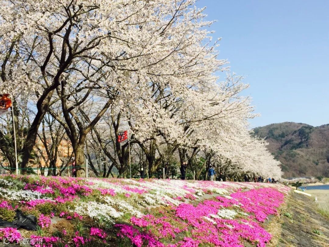 富士山樱花季必去河口湖赏樱,沿湖北岸种植约300棵樱花树并延伸约1公里。中途停留新仓富士浅间神社,享受右侧五重塔、左侧富士山的樱花绝景。