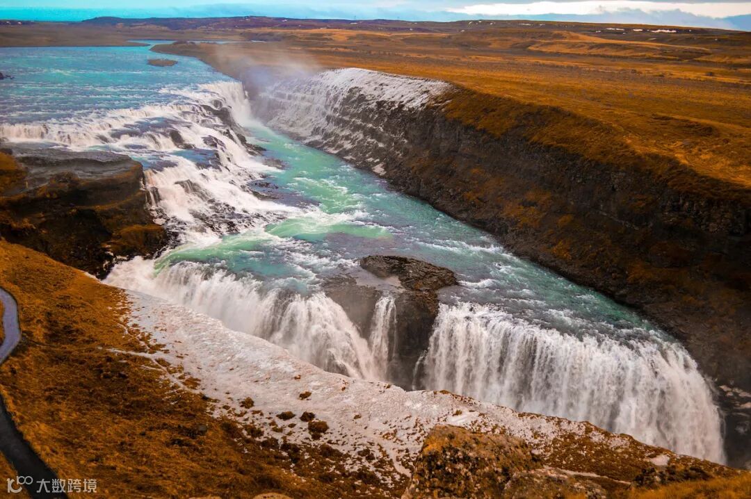 黄金瀑布是冰岛最壮观的瀑布之一,总高度32米,最长下降21米,是冰岛最受欢迎的旅游景点之一,属于雷克雅未克周边黄金三角线的一部分。