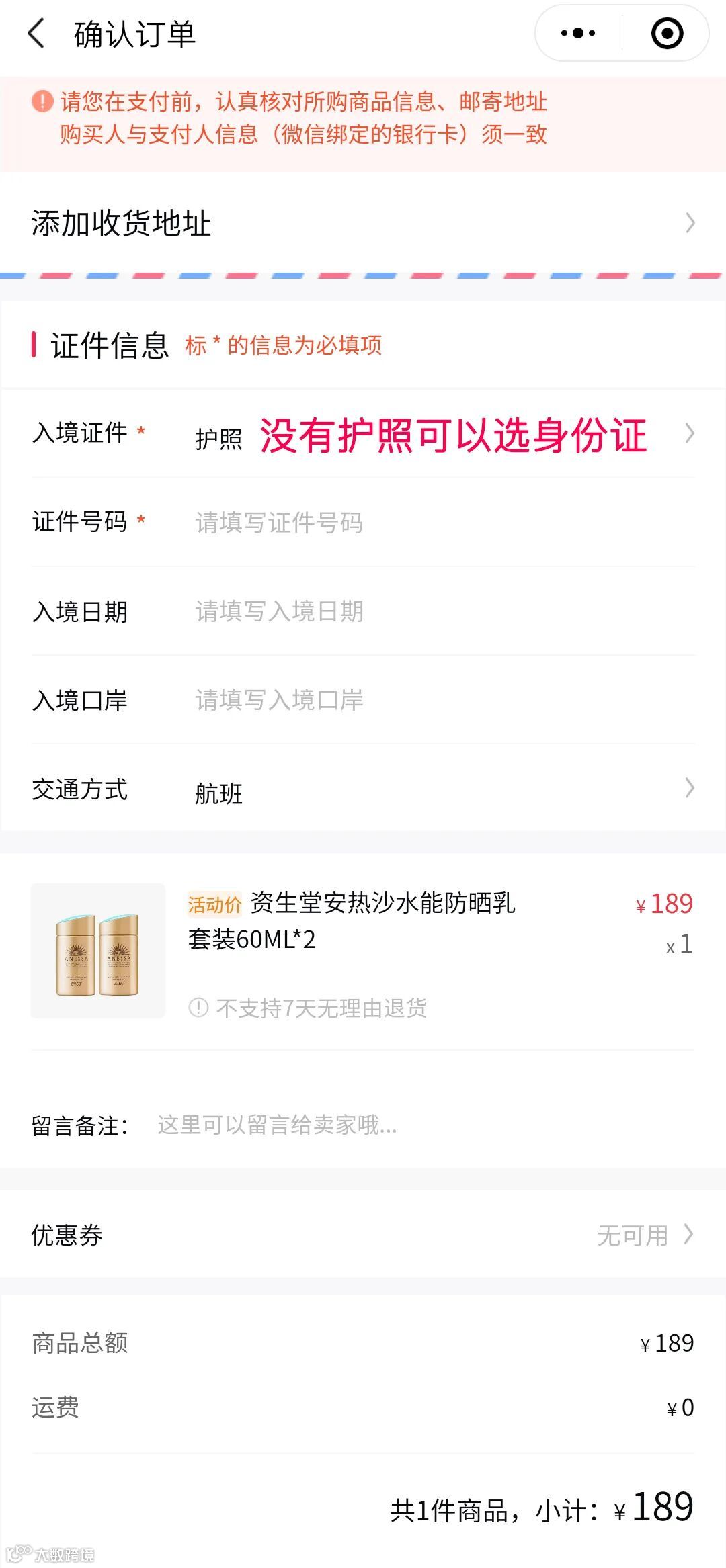 入境证件如果没有护照可以点击右边,选择身份证,然后填写个人身份证号就可以。