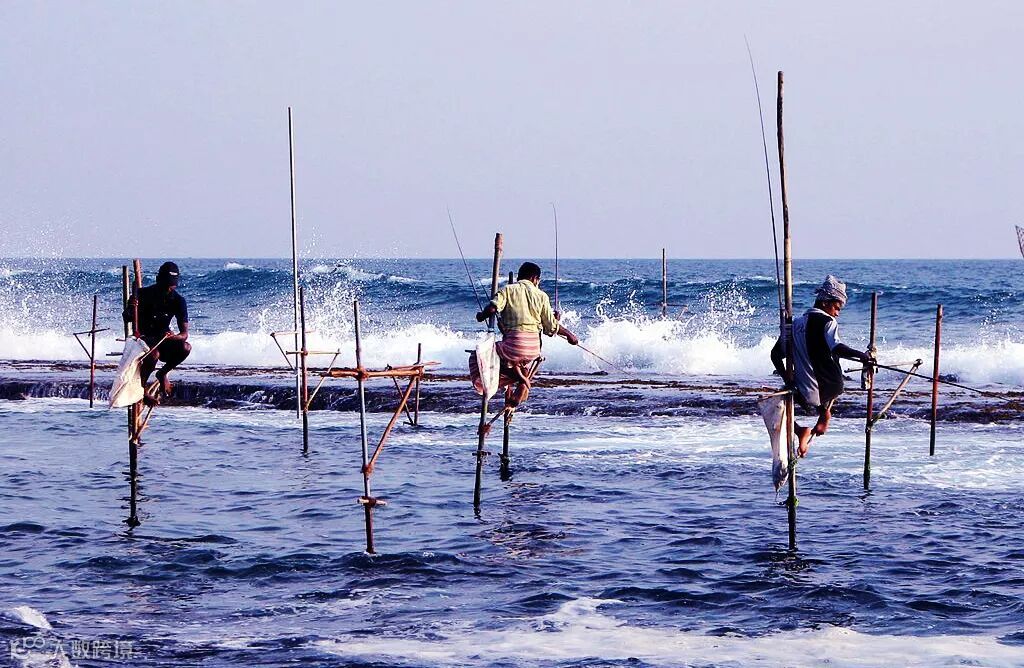 在斯里兰卡的南部海岸,你会看到全世界独有的高跷钓鱼,当地人每次钓鱼都要先游过去,爬上简易木架,稳坐1-2小时,静等鱼上钩,远远看去,像是脚踩在海水中挺立的高跷上钓鱼一般,故此得名。