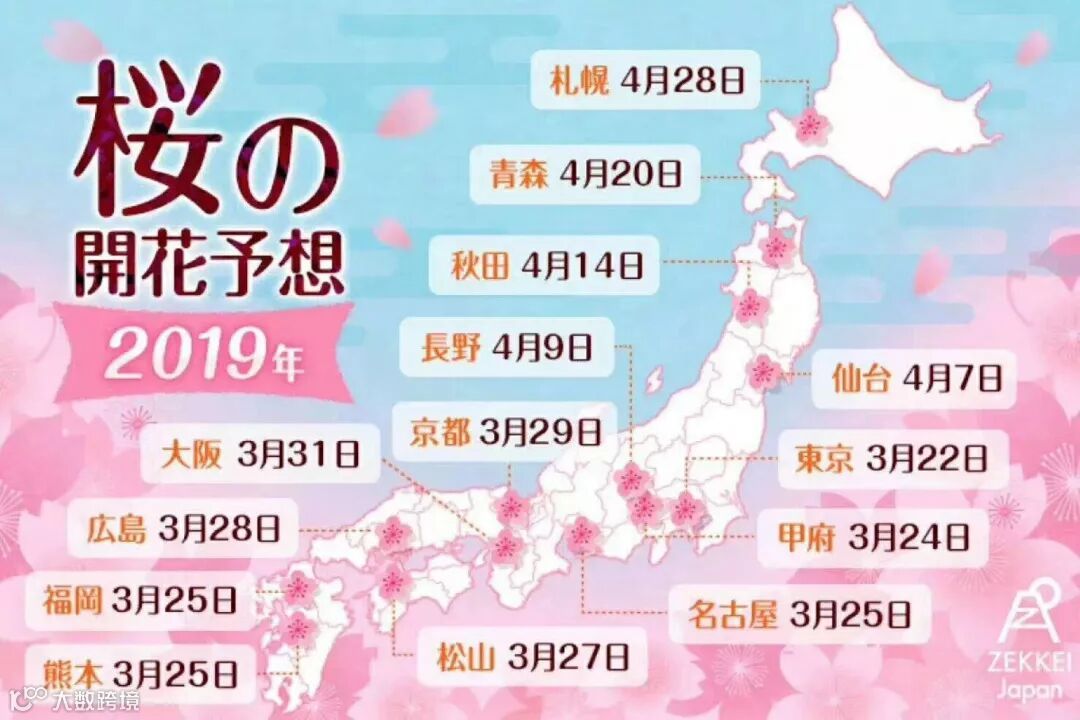 根据往年的经验,日本还有一定的几率遭遇寒流,所以花期的预测时间是有可能会变动的。距离开花时间越近,预测是会更加准确,实况消息会在此网站更新哦,大家可及时关注。