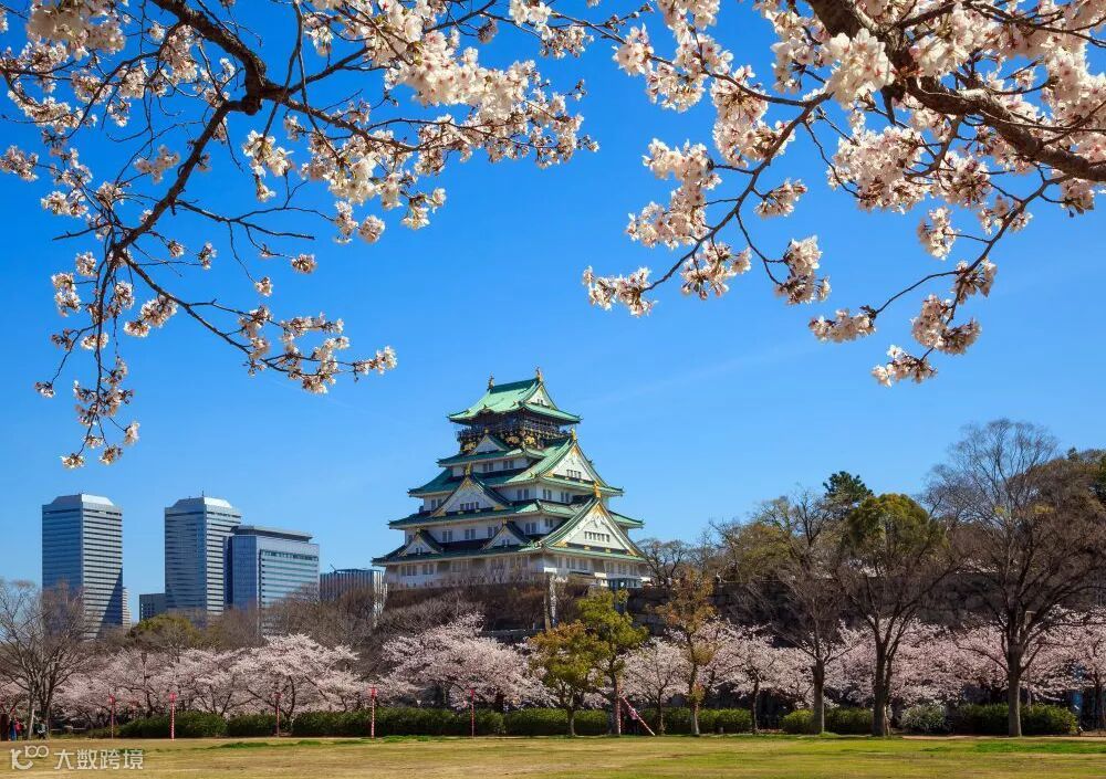 在这里还能从独特的角度拍摄到大阪城天守阁的美照,也是野餐的好去处。最佳赏樱位置是登上天守阁的八层了望台,开启“上帝视角”,既可远眺大阪美景,更可将大阪城的绚烂樱花尽收眼底。