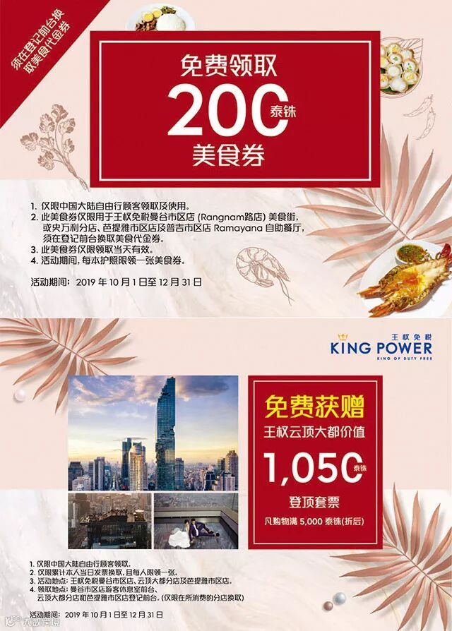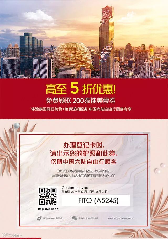 在一楼登记台登记相关信息,并出示此凭证,并免费领取200泰铢美食券,如下图所示:
