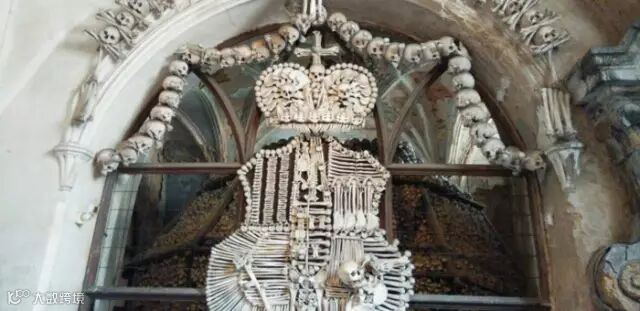 建于14世纪人骨教堂外表是看似十分普通的哥特式建筑造型,但教堂内的装饰都是用人骨做成的,仿佛一个人骨博物馆。在教堂地下室里,还安放着大约4万名瘟疫死者的遗骨。