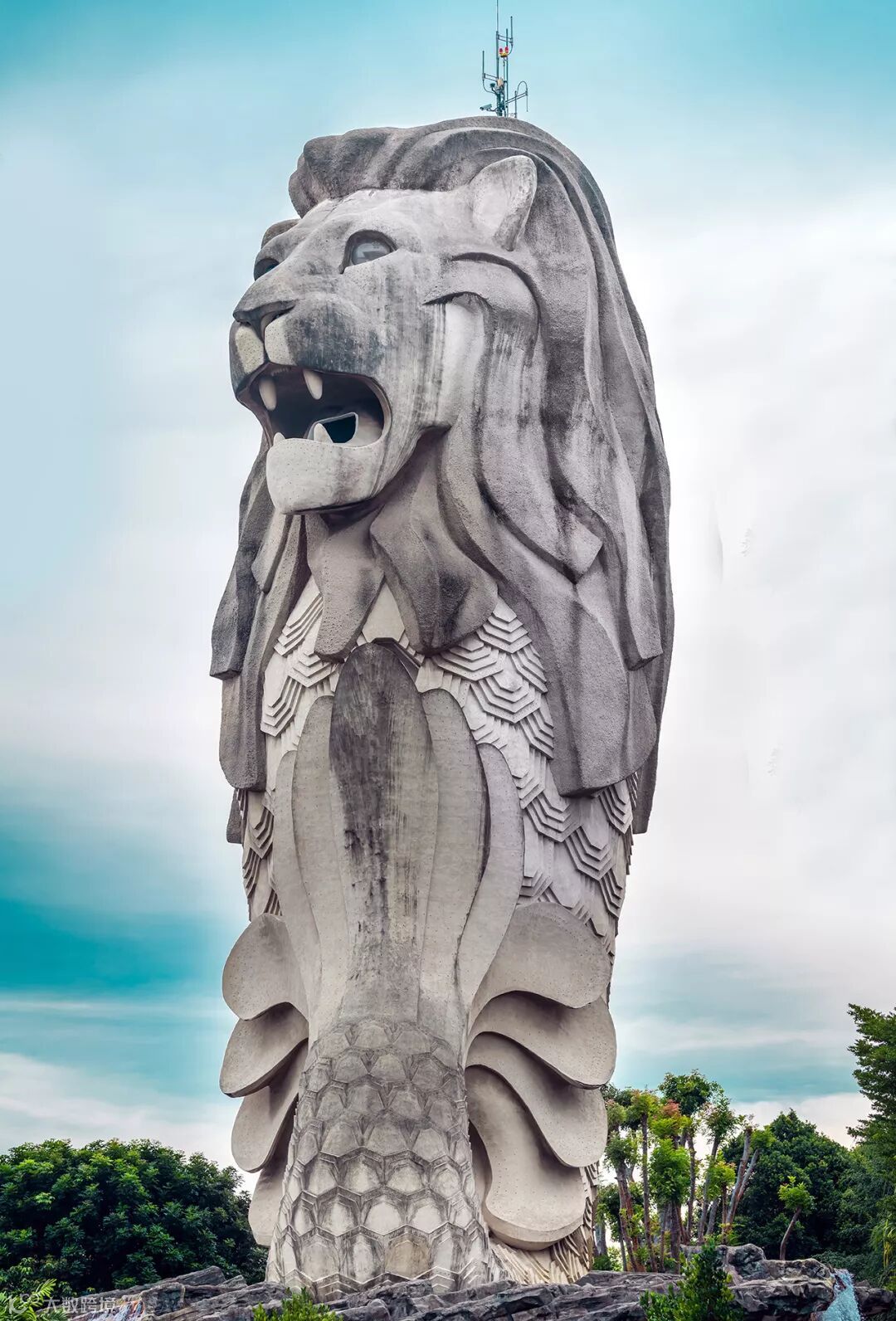 新加坡全岛共有7座鱼尾狮,鱼尾狮公园的这座及一旁的小鱼尾狮雕像最为出名。此外,圣淘沙高约37米,内部中空的鱼尾狮也是游客的最爱,游客可购票乘电梯直达鱼尾狮顶端鸟瞰整个圣淘沙。