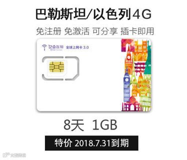 巴勒斯坦、以色列通用流量套餐,抵达目的地插卡即用方便快捷,更有有史以来最大力度折扣哦!8日特价套餐,低至30元,点击左下角“阅读原文”即可购买。数量有限,售完为止,快来抢购吧~