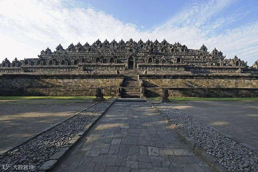 婆罗浮屠佛塔位于爪哇岛中部的日惹附近,与中国长城、印度泰姬陵、柬埔寨吴哥窟合称东方四大奇迹。婆罗浮屠修建于8-9世纪的夏连特拉王朝时期,整个建筑约用200多万块玄武岩石块砌成,总计5.5万立方米。