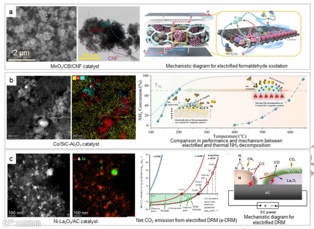 这套新范式带来的性能提升,不是一点点:炭烟燃烧起燃温度降到75°C以下,NOₓ起燃温度降低100°C,甲醛转化率比传统加热高3倍、节能>90%,甲烷干重整能效2.976 mmol/kJ,有望实现净CO₂负排放。