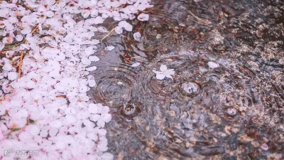亦粉亦白的樱花在风中飞舞,随便一拍,都是一张可以寄出去的明信片。河中的樱花倒影更为可爱,像极了害羞的小姑娘。