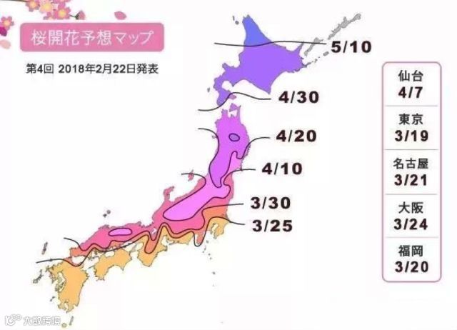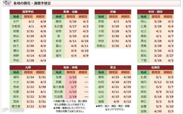 今年日本各地樱花开放时间如下: