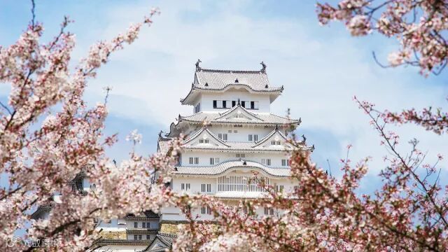 姬路城是日本第一城,由于其白色的外墙和蜿蜒屋檐造型犹如展翅欲飞的白鹭,因而也被称为白鹭城。白墙灰瓦下是一片樱花海,染井吉野樱簇拥着整座城堡。风吹过,花瓣掠过屋檐,让人不由得驻足赞叹。