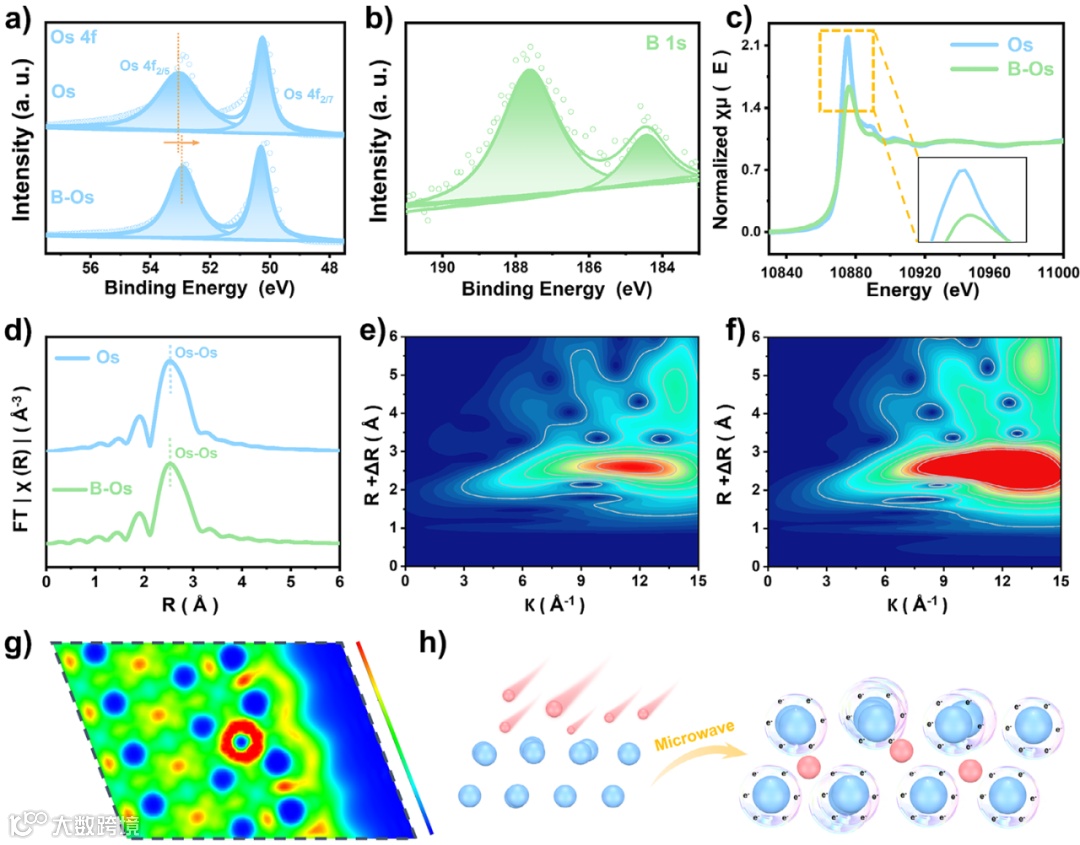 • XPS:Os 4f 峰负移 0.13 eV,B 1s 出现 B⁰ 信号。