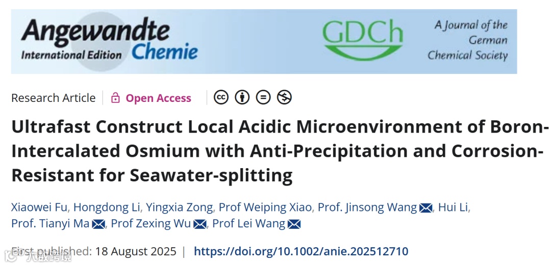 10 秒,在实验室里可能只够按一次按钮,青岛科技大学王磊/吴则星团队与昆明理工大学王劲松、RMIT 马天翼合作,用微波准固态法“闪焊”出间隙硼掺杂锇(B-Os)催化剂——让海水直接产氢,7 mV 就能跑 10 mA cm⁻²,400 h 不衰减。这篇 8 月 18 日上线 Angew 的重磅成果,把“抗氯腐蚀+防钙镁沉积”两大世纪难题一次性打包解决。