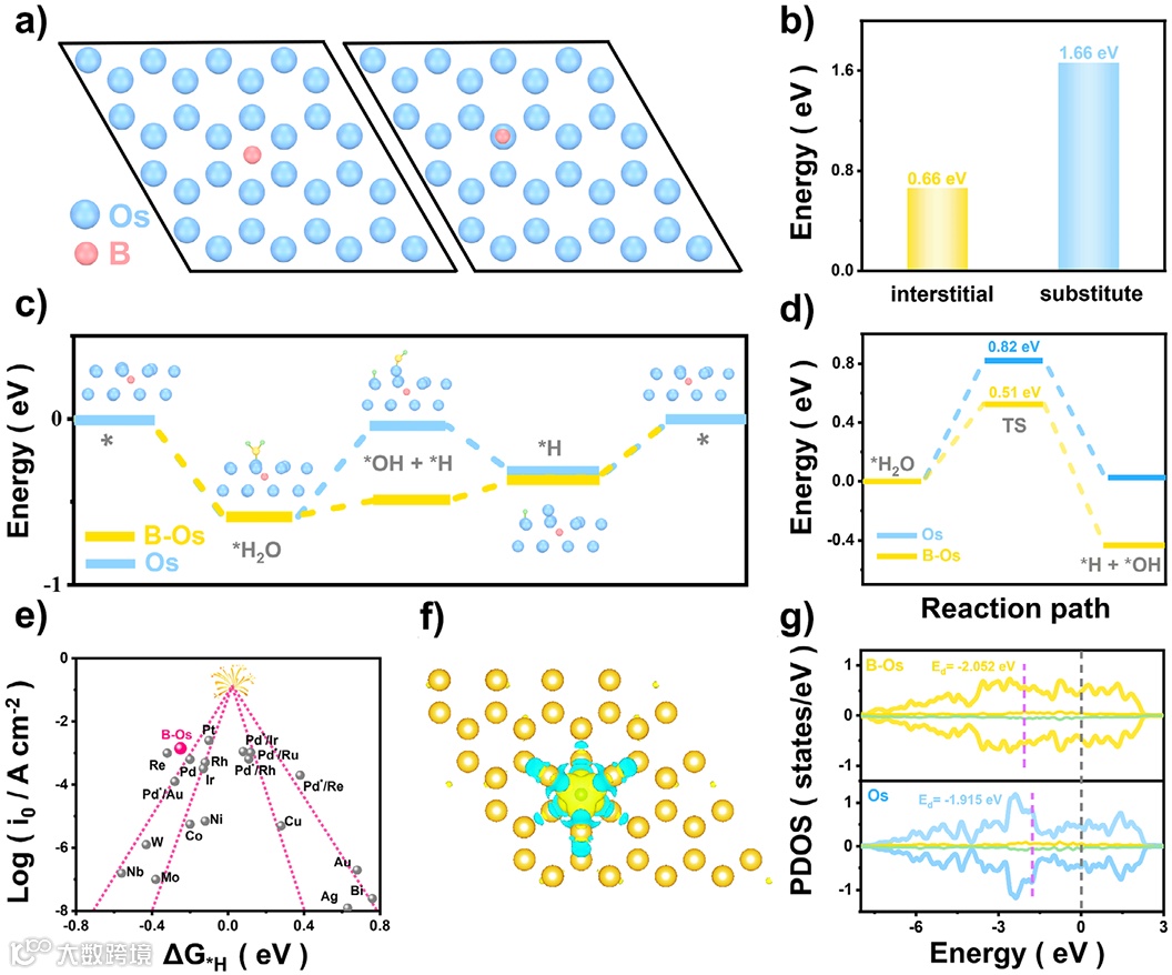 • 差分电荷密度:B 向 Os 转移 0.36 e,削弱 Cl⁻ 吸附能 0.41 eV。