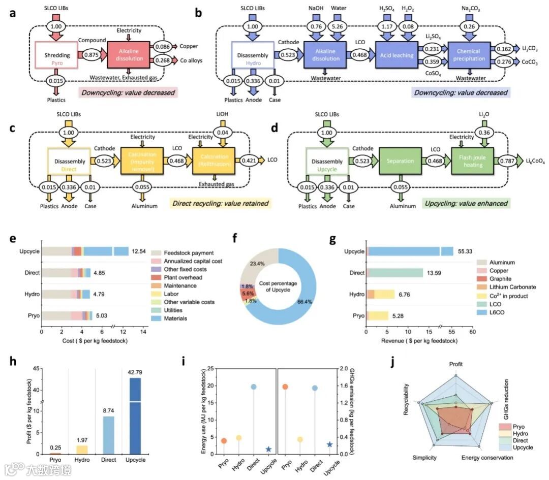 经济环保:技术经济与生命周期分析表明,该路线在能耗、碳排放和单位原料利润上均显著优于传统火法、湿法及直接再生工艺。
