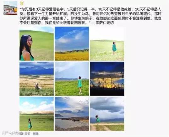 九张图都发人像,容易显得太自恋,似乎整段旅行都在拍照...九张图都发景色又少了些活力。所以有一两张人像为最佳。