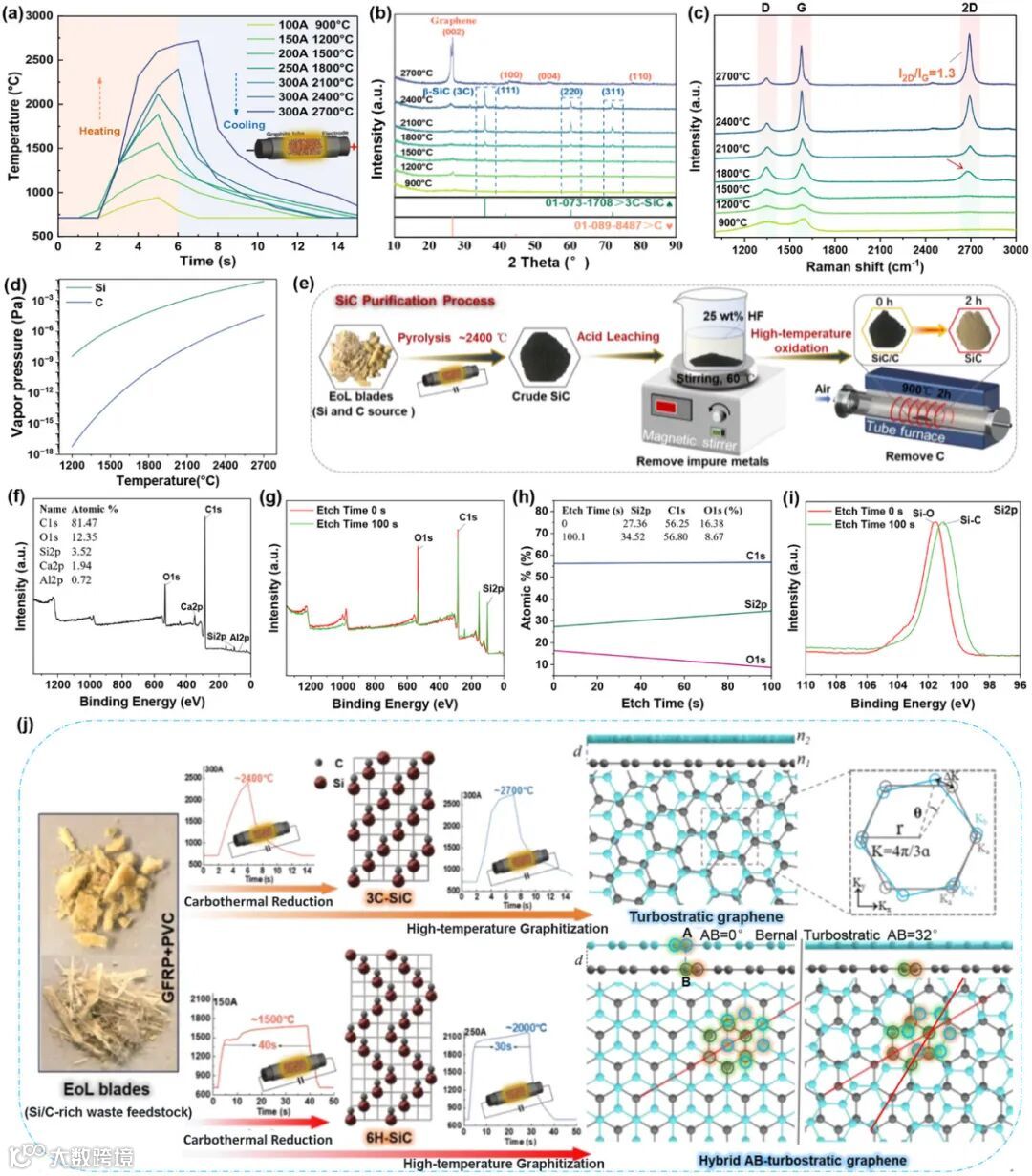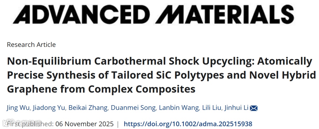 面对全球风电叶片退役浪潮(预计2030年达18.93GW)及其复合材料回收难题,清华大学李金惠教授团队在材料学顶刊 《Advanced Materials》 上发表颠覆性研究成果。团队开发了非平衡碳热冲击技术,首次实现将废弃风电叶片在秒级时间内直接转化为高价值碳化硅与石墨烯。该技术使碳排放降低86%,成本仅0.11美元/公斤,制备的杂化石墨烯电导率高达1791 S·m⁻¹,为新能源产业固废资源化提供了原子级精度的绿色解决方案。