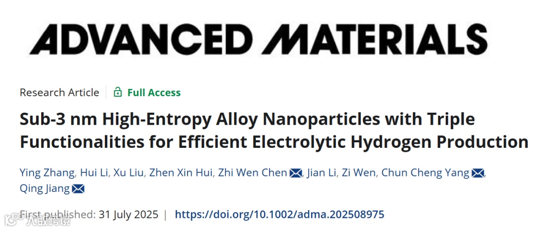 氢能作为清洁能源代表,其高效、低成本制取是核心挑战。阴离子交换膜(AEM)电解槽前景广阔,但其阴极析氢反应(HER)动力学缓慢,尤其在高电流密度下,亟需高性能催化剂突破瓶颈。吉林大学蒋青、杨春成、陈志文团队在《Advanced Materials》发表重磅研究,利用超快速热冲击技术(升温速率高达 2333 K s⁻¹,全过程仅 0.5秒),在碳纤维纸上原位合成亚3纳米铂钌铁钴镍铜六元高熵合金催化剂(us-HEA/CFP),实现了析氢性能的飞跃!该研究采用的超快升降温热冲击平台,由深圳中科精研科技有限公司提供技术支持。