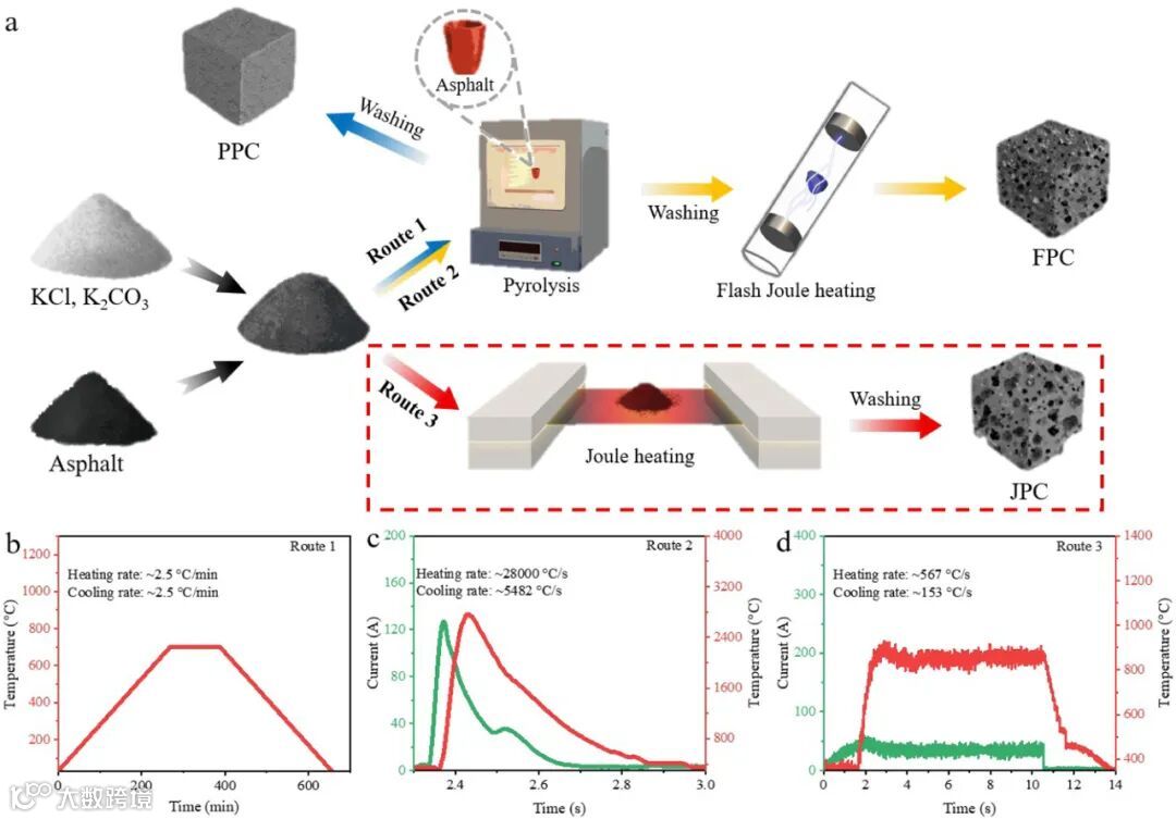 秒级合成技术:熔盐焦耳加热在8秒内完成碳化与活化,较传统2小时热解工艺效率提升900倍