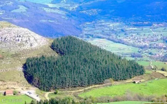 这是位于西班牙北部坎塔布里亚的一个森林。这个心形的形状只能在照片拍摄的这个角度看出来。站在森林中,你是看不出来的,就如同古诗中描述的那样,“不识庐山真面目,只缘身在此山中”。