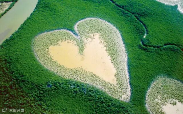 这是位于台北市的关渡自然保护区,保护区内有一个心形湿地公园。在公园里,你可以找到心形的湿地;又或许曾经到过那个公园的你,经过了也未曾知道。