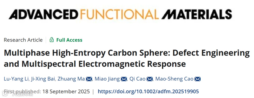 面对复杂环境下电磁防护与多功能集成的迫切需求,北京理工大学曹茂盛教授团队与东南大学曹祺研究员合作在Advanced Functional Materials上发表重要研究成果。该研究通过开发"稀土固定+高压分散"结合闪蒸焦耳加热(FJH)的新策略,在50毫秒内成功制备出多相高熵碳球材料,实现了宽频电磁吸收(6.85 GHz)、优异耐腐蚀性和光响应性的多功能协同,为恶劣环境下的电磁防护材料设计提供了新思路。