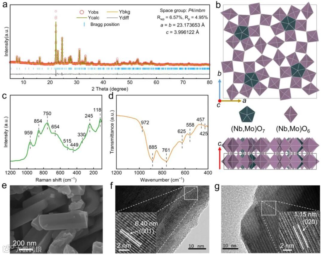 图1:Nb₂Mo₃O₁₄的晶体结构与形貌表征