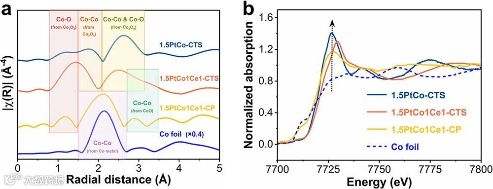 XANES:Ce 存在时 Co²⁺ 占比 32.5 %,价态调控实锤。