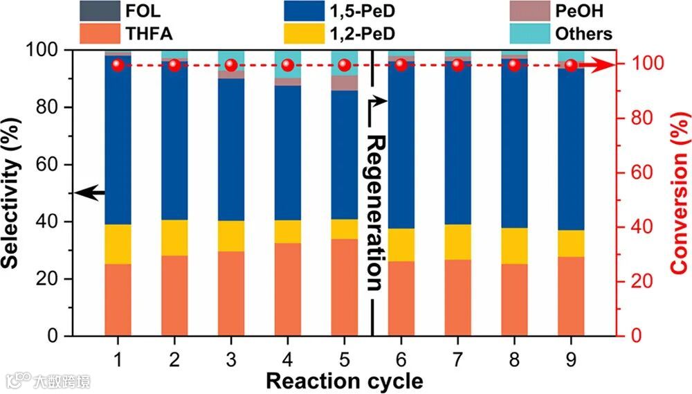 选择性跃升:Co²⁺/氧空位协同定向断裂 C₂-O₁ 键,1,5-PeD 选择性提升至 59.2 %,STY 达 8.03 mmol·g⁻¹·h⁻¹。