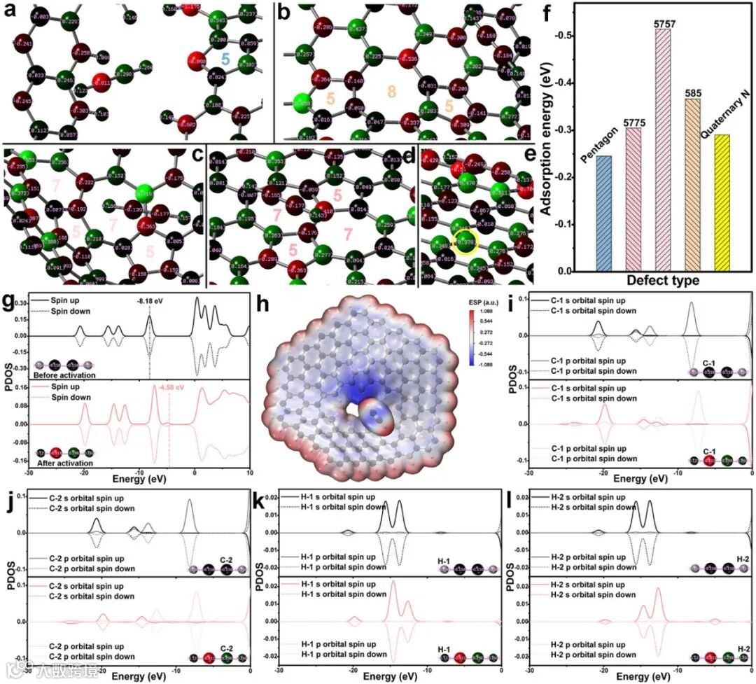 机制深刻:首次通过计算与实验结合,清晰揭示 “五元环缺陷电子转移活化碳源 → 多缺陷表面自组装生长” 的非金属催化完整路径,明确了五元环的关键作用。