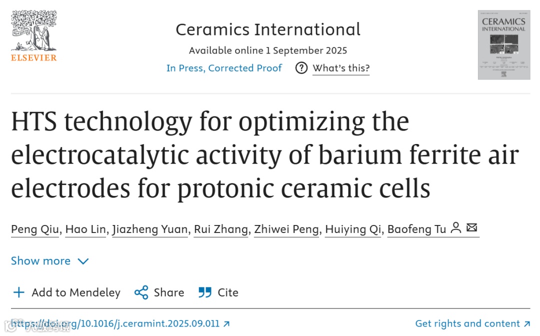 质子导体固体氧化物电池(P-SOCs)被视为中低温绿色能源转换的“终极方案”,但空气电极的氧反应动力学一直是“卡脖子”环节。2025 年 9 月 1 日,山东科技大学涂宝峰教授团队在 Ceramics International 发表最新研究:借助高温热冲击(HTS)技术,仅用 40 秒便获得以 Ba₂Fe₂O₅ 为主相的无钴钡铁氧体,一举将 650 °C 下的燃料电池峰值功率密度推至 0.806 W cm⁻²,电解模式 1.3 V 电流密度达 1.654 A cm⁻²,并稳定运行 100 小时以上。本文梳理关键数据,为从事 P-SOC 电极材料设计的同行提供一份“快速制备-高活性”路线图。