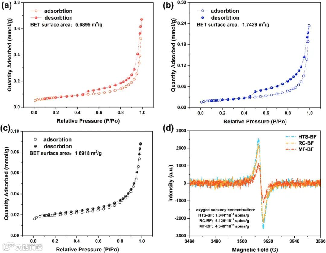 • 结构优势:Ba₂Fe₂O₅ 主相 + 少量 BaFe₂O₄,比表面积 5.69 m² g⁻¹,氧空位浓度 1.04×10¹⁴ spins g⁻¹。