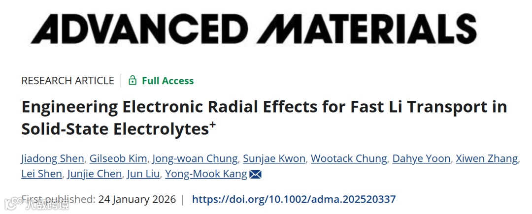 Shen, J.; Kim, G.; Chung, J.-w.; et al. Engineering Electronic Radial Effects for Fast Li⁺ Transport in Solid-State Electrolytes. Adv. Mater. 2026, 2520337. DOI: 10.1002/adma.202520337.