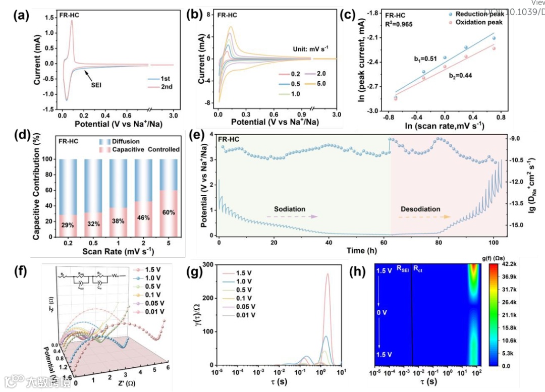 GITT,整个电压区间再生品的钠离子扩散系数比新鲜品高一个数量级,低压平台区尤其明显。