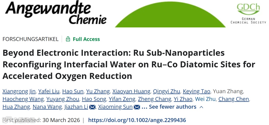 北京化工大学孙晓明、李加展团队最近在《Angew》上发了一篇,换了个思路。他们用焦耳加热,造了一个“原子-团簇”双打组合——Ru-Co双原子位点负责“干活”(吸附氧中间体),Ru亚纳米团簇(~1.1 nm)负责“后勤”(活化水、送质子)。两个角色分工明确,谁都不抢谁的活。